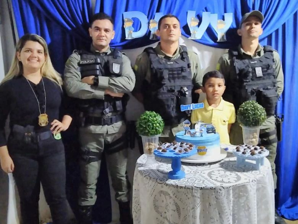 Uma guarnição da Polícia Militar da 2°CIA do 23° BPM do município de Elesbão Veloso, localizado na região Sul do Piauí, participou na noite da última terça-feira (14), do aniversário do pequeno Davy Lucas, que completou 8 anos de idade e é fã da corporação.