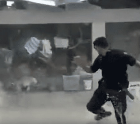 Em um outro momento do vídeo, após o resgate, dois PMs deixam a residência às pressas e por pouco não são atingidos pelos escombros do telhado da área. Ao ouvirem o barulho, ele correm e um ainda chega a cair. Apesar do susto, os profissionais saíram ilesos.