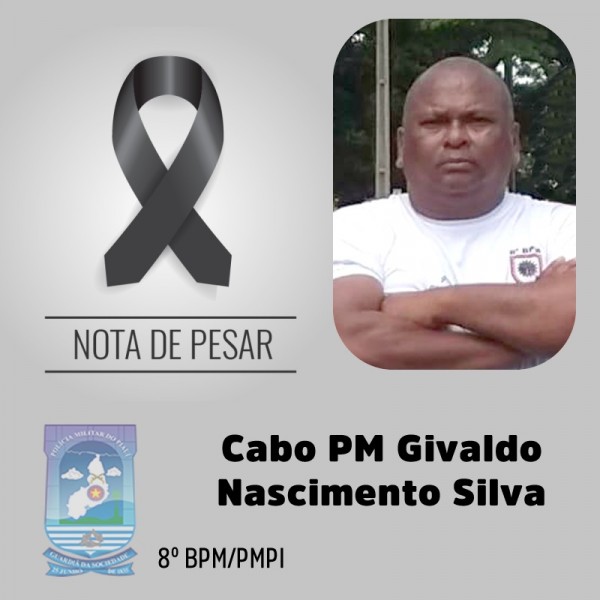 É com imenso pesar que a Polícia Militar comunica o falecimento do Cabo Givaldo Nascimento Silva, 47 anos, ocorrido na tarde desta sexta-feira (05) em Teresina-PI, vítima de uma pancreatite aguda. O militar era lotado no 8º BPM, na Zona Sudeste de Teresina e ingressou na Instituição em Agosto de 1992, prestando bons serviços a sociedade piauiense há 28 anos.