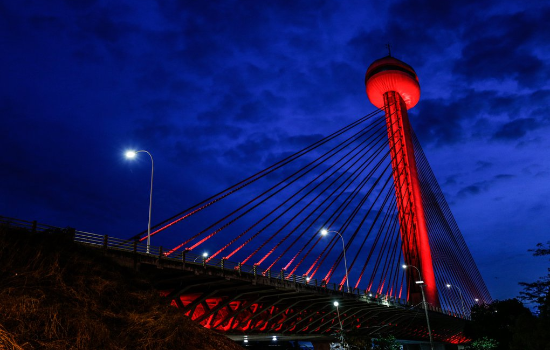 A Ponte Estaiada João Isidoro França está na cor vermelha, desde a última segunda-feira (22) e segue até este sábado (27), em alusão ao Dia do Doador Voluntário de Sangue, comemorado dia 25 de novembro no Brasil.