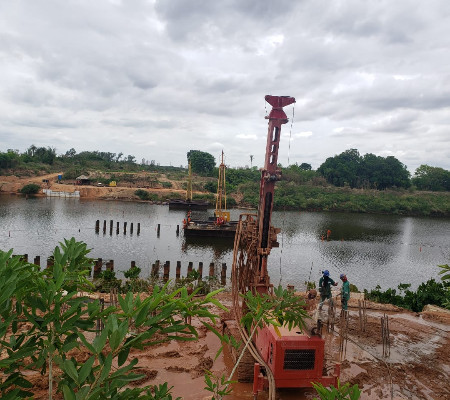 “No momento, estamos fazendo a cravação das estacas no leito do rio e também concretando os blocos, inclusive na outra margem já vemos os pilares da obra. Esse trabalho está sendo realizado com uso de balsas. Do total de 292 estacas, já foram colocadas 130. A ponte terá nove eixos e 22 blocos”, explicou Adélia de Melo, engenheira da SDU Centro Norte, responsável pela obra.