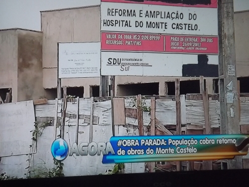 A população do Monte Castelo, insatisfeita com o andamento da reforma do hospital do bairro, cobra rapidez na conclusão da obra, iniciada antes da eleição municipal, em 2012. Após algumas paralisações, em janeiro de 2014, a reforma parou de vez.
