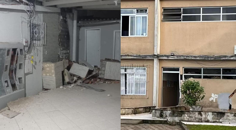 Imagens registradas no local mostram rachaduras nas paredes e no piso, além de vidros quebrados e intensa movimentação das equipes de resgate.