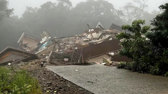 Um prédio desabou na manhã desta quinta-feira (23) em Gramado (RS), após dias de chuva na região. O desmoronamento ocorreu às 5h40 no bairro Três Pinheiros. O local está isolado pela prefeitura após aparecimento de rachaduras.
