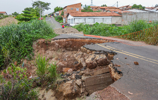 O prefeito de Teresina, Dr. Pessoa, juntamente ao superintendente das Ações Administrativas Descentralizadas Leste (Saad Leste), James Guerra, visitaram, na tarde desta segunda-feira (21), a cratera que se formou na Rua Apolo 9, no residencial Saturno, na região do bairro Satélite, zona Leste da capital.