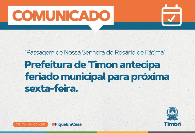 A prefeitura de Timon considera importante a antecipação do feriado, como forma de manter a população em casa por mais tempo, reduzindo o risco de disseminação do novo coronavírus.