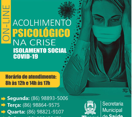 O isolamento social tem afetado diretamente as pessoas nesse período. A nova rotina em casa durante a quarentena requer mudança de hábitos e um cuidado especial da mente. Pensando nessa fase de dificuldades e de muitas mudanças, a Prefeitura de Timon está disponibilizando gratuitamente a toda a população o serviço de atendimento psicológico on-line.