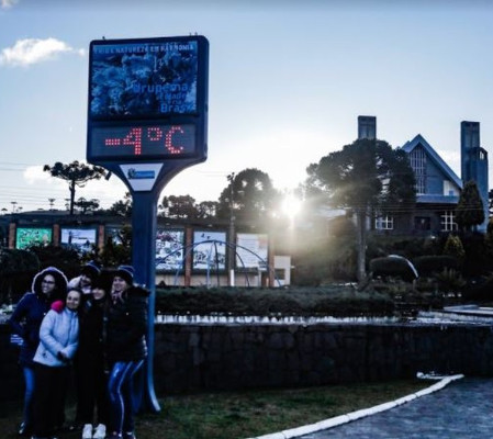 Há previsão de temperaturas negativas ao amanhecer nas serras gaúcha e catarinense, com a possibilidade de neve e chuva congelada nesses dois locais e no sul do Paraná.