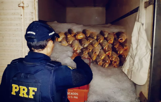 Ao solicitar a documentação da carga transportada o condutor informou não portar qualquer nota fiscal ou documento sanitário. Diante disso, os policiais rodoviários realizaram a apreensão do caminhão e do pescado, que foram entregues aos técnicos da Agência de Defesa Agropecuária do Maranhão (AGED) para os procedimentos legais cabíveis.