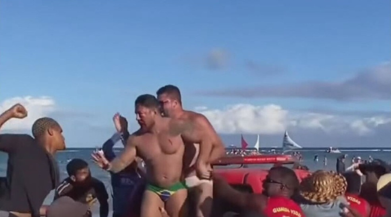 - O casal teve que pedir socorro às equipes de guarda-vidas civis que estavam na praia;