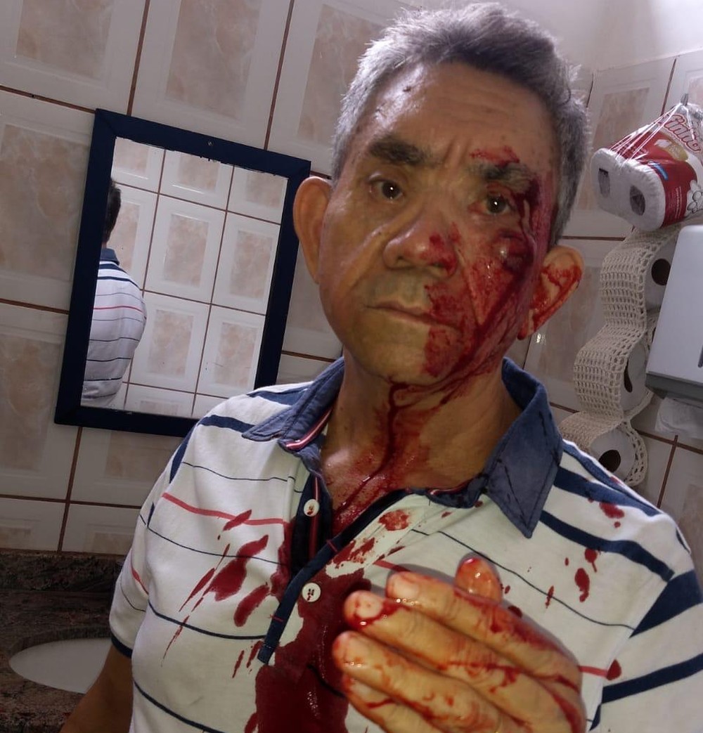 O educador foi levado à Santa Casa de Lins e recebeu oito pontos nos cortes, sendo seis no rosto e dois no supercílio.