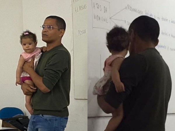 A foto do professor de Direito e vereador de Teresina, Ismael Silva, de 32 anos, segurando uma bebê durante a aula, tem viralizado nas redes sociais. A criança é filha de uma de suas alunas. Na ocasião, a estudante estava assistindo aula com a menina, porém, a pequena estranhou o ambiente e começou a chorar.