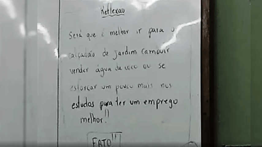 👨🏫 PROFESSOR - Ao UOL, o professor identificado como Marcos Lengrub, esclarece que foi mal interpretado e que a frase não buscava menosprezar o trabalho, mas sim incentivar os alunos a buscar a transformação da sua realidade.