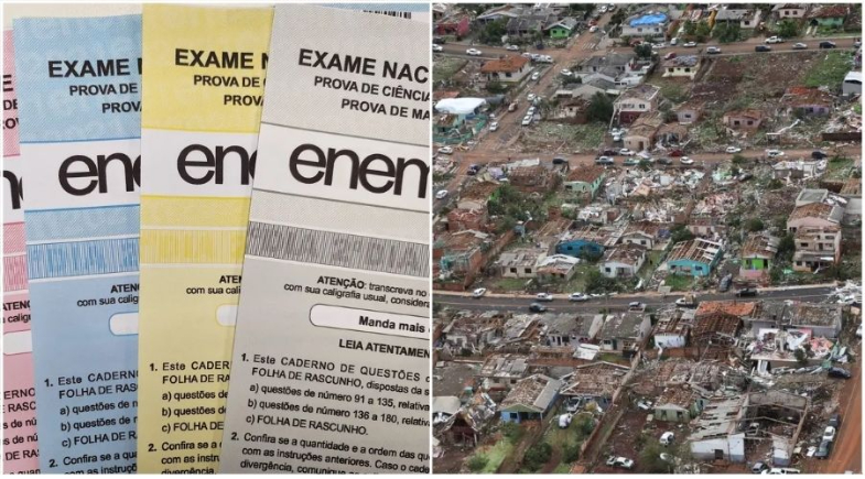 O Exame Nacional do Ensino Médio (Enem) foi suspenso em Rio Bonito do Iguaçu, no centro-sul do Paraná, após a passagem de um tornado que causou grandes estragos na cidade na noite de sexta-feira (7). A decisão foi anunciada neste sábado (8) pela Secretaria de Educação do Estado do Paraná (Seed-PR), em conjunto com o Instituto Nacional de Estudos e Pesquisas Educacionais Anísio Teixeira (Inep).