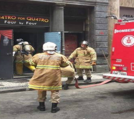 No fim da manhã desta sexta-feira (18), um incêndio atingiu a Whiskeria Quatro por Quatro, no Centro do Rio de Janeiro. O fogo começou por volta de 11h30 e, cerca de quatro horas depois, muita fumaça ainda saía do prédio. O comandante-geral do Corpo de Bombeiros, coronel Roberto Robadey, confirmou que quatro bombeiros morreram ao tentar apagar o fogo, e que e um outro socorrista está desacordado, segundo o Extra.