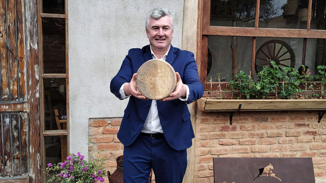 “Leva um ano para ficar pronto. E todos os dias, a gente tem que virar e escovar ele. São necessários 17 litros de leite para fazer um quilo de queijo. A produção desse queijo é feita duas vezes por semana, embora ele leve um ano para ficar pronto. A gente faz um queijo de cinco quilos”.