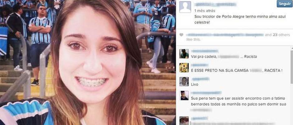 A garota deletou seu perfil no Facebook apenas meia hora após a partida, e a página de Instagram também não durou muito tempo no ar. Em uma foto onde ela aparece vestindo a camisa do Grêmio e falando de sua paixão pelo time gaúcho, um internauta questionou: "e esse preto na sua camisa?".