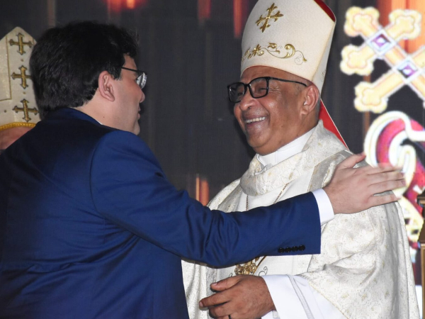 O governador Rafael Fonteles participou, neste sábado (25), da posse do novo arcebispo de Teresina, Dom Juarez Marques Sousa da Silva. A solenidade ocorreu na Catedral Metropolitana de Nossa Senhora das Dores, na Praça Saraiva, Centro da capital. Além da mensagem de boas vindas, Fonteles manifestou o desejo de manter parcerias com a igreja católica.