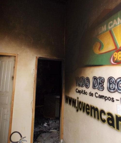 Durante a chuva um raio caiu sobre a torre de transmissão da Rádio Comunitária Jovem Campos FM, que provocou um incêndio e levou a destruição de todo equipamento e parte da estrutura do prédio.