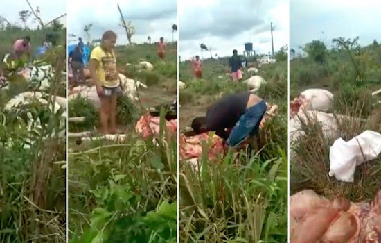 Em um vídeo, divulgado em grupos de WhatsApp, várias pessoas aparecem cortando a carne dos animais no local da tragédia.