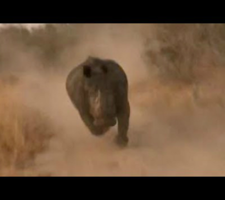 Um safári sul-africano quase terminou em desastre com um rinoceronte adulto perseguindo um carro repleto de turistas por mais de 500 metros.