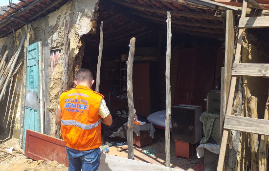 Feita de barro, a parede ficou bastante úmida e fragilizada, o que comprometeu a estrutura da casa. De acordo com a Defesa Civil, a família foi orientada a deixar do local e ficou de sair da residência ainda nesta terça-feira (18).