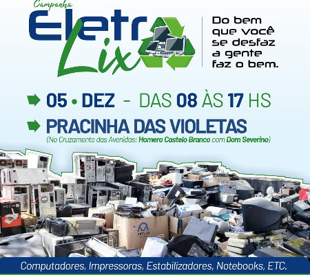 Acontece neste sábado (5) a 4ª edição da Campanha Eletrolixo, com organização de todos os Rotary Clubes de Teresina. O material arrecadado, que inclui computadores, impressoras, notebooks e eletrônicos, será doado para o Movimento Pela Paz na Periferia (MP3), que reutiliza o material na capacitação de jovens.