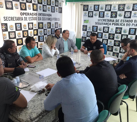 O Secretário de Segurança Pública, Fabio Abreu Costa, reuniu-se na manhã desta segunda-feira (06) com Delegado Geral, Luccy Keiko Paraíba, a Diretora de Gestão Interna da SSPPI, Anamelka Cadena, o Diretor da Assistência Militar da SSPPI, Major Audivam Nunes, os gerentes de polícia civil, das regiões metropolina, interior e especializada, além das autoridades representates da Policia Militar.