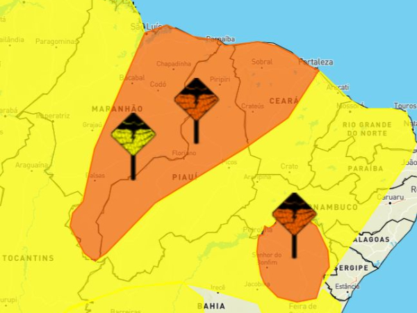 No alerta amarelo, há expectativa de volumes entre 20 e 30mm/h, ou 50 e 100mm/dia nas regiões sudeste, sudoeste e centro-norte piauiense. Para esses locais, há também o risco de ventos intensos, com velocidades entre 40 e 60 km/h, com baixa chance de corte de energia elétrica, descargas elétricas, alagamentos e queda de árvores.