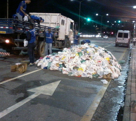 Uma foto tirada no local mostra a montanha de alimentos e um caminhão com agentes da Prefeitura recolhendo os produtos. A organização do evento afirmou que a equipe responsável pela segurança e limpeza do evento abandonou o local por causa da chuva e que o caso foi resolvido nesta manhã.
