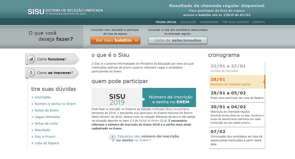 Neste ano, as inscrições foram prorrogadas para as 23h59 do último domingo (27), por causa de instabilidades no sistema. Candidatos estavam com dificuldade de entrar no Sisu e marcar as opções de curso desejadas - o site não carregava e, quando abria, exibia uma tela de login com problemas.