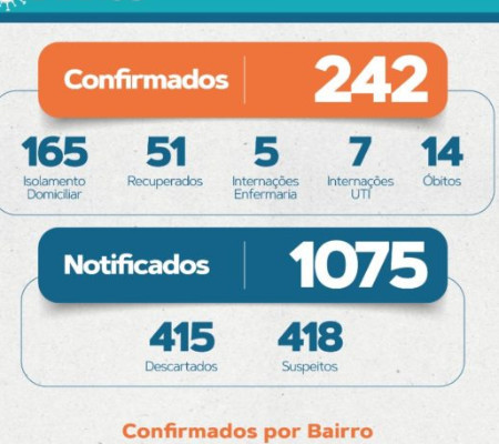 Já os casos suspeitos da COVID foram mapeados em 71 bairros. Com maior número estão: