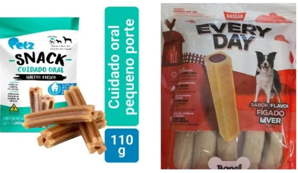 Os petiscos que já estavam identificados eram o Dental Care e o Every Day. A outra embalagem informada pela polícia é a Petz Snack Cuidado Oral. Todos são de fabricação da empresa Bassar.