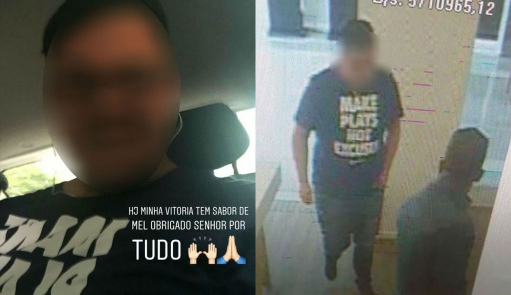O rapaz foi registrado por câmeras de segurança e estava com a mesma roupa tanto no assalto quanto na publicação.