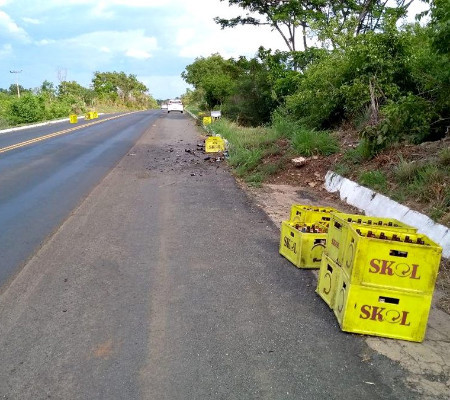 A carreta estava totalmente carregada com vasilhames, que seguiam para Teresina. Ainda de acordo com ele, 20 caixas despencaram deixando uma “quebradeira de frascos” na rodovia. Ele disse ainda que tudo não passou de um susto e ainda um prejuízo em razão dos frascos quebrados.
