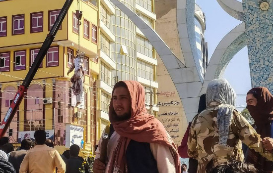 Corpo exposto em praça pública pelos talibãs em Herat, no Afeganistão Foto: - / AFP