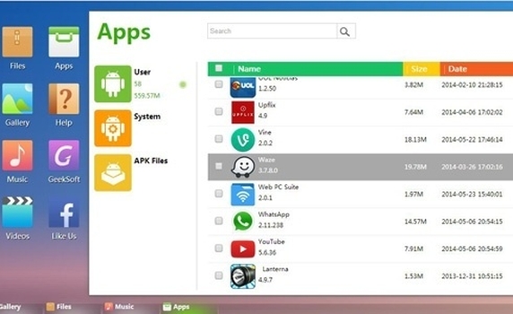 Na tela do PC, os dados do smartphone aparecem divididos por categorias ? arquivos, apps, galeria, vídeos e música -, o que facilita o trabalho.