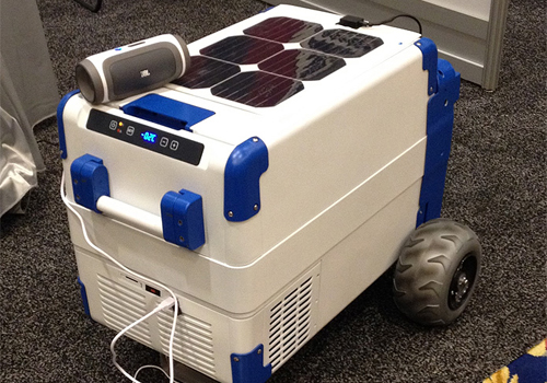 O SolarCooler utiliza painéis de energia solar destacáveis para captar a luz do dia e produzir o necessário para o funcionamento do aparelho, que possui rodinhas para transporte. Além da praia, ele pode ser usado em camping, barcos e transportado na carroceria de veículos do tipo pick-up. A temperatura alcançada pelo dispositivo permite ainda a fabricação de cubos de gelo.