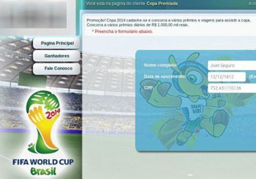 Um golpe virtual que utiliza a Copa do Mundo de 2014 como isca vem tentando roubar dados bancários dos internautas brasileiros. O alerta é da ESET que divulgou um comunicado na terça-feira (15). Segundo a empresa de segurança e antivírus, o ataque utiliza método de phishing. Com a aproximação do evento, está aumentado o número desse tipo de golpe usando os jogos para atrair as vítimas.