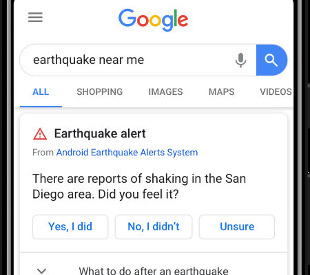 Quanto ao resto do mundo, o primeiro passo será utilizar os dados coletados para o compartilhamento rápido e preciso de informações sobre o terremoto. Ao buscar “terremoto” ou “terremoto perto de mim” na pesquisa, o usuário poderá obter detalhes do acidente. A ideia é que quando a pessoa sentir um tremor, ela possa confirmar na plataforma se, de fato, se tratou de um tremor ou não.