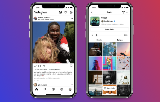 As pessoas poderão poderão tocar no ícone “áudio” das fotos com música para escutar a faixa. O nome do artista ou da música poderá ser acessado para ver outros materiais publicados na rede com a mesma trilha sonora.