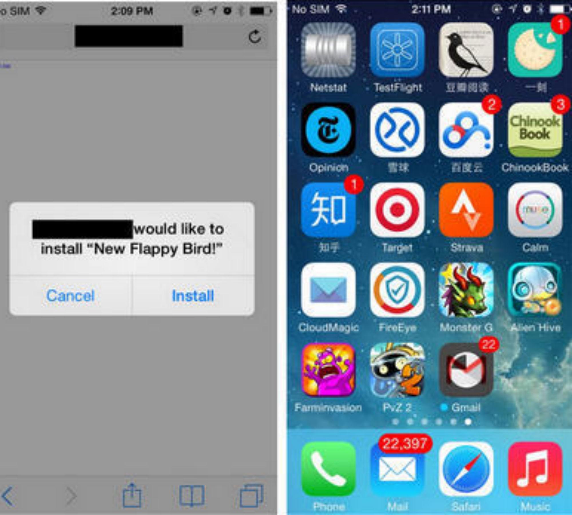 O problema, que foi descoberto pela empresa de segurança FireEye, afeta as versões 7 e 8 do iOS. Enquanto elas não recebem uma correção, a saída é ficar atento. Se você receber algum link suspeito, pergunte para a outra pessoa se ela realmente enviou aquilo, e do que se trata. E se por acaso aparecer alguma janelinha pop-up tentando instalar programas (como esta reproduzida acima), dê "Cancelar". Avise seus amigos.