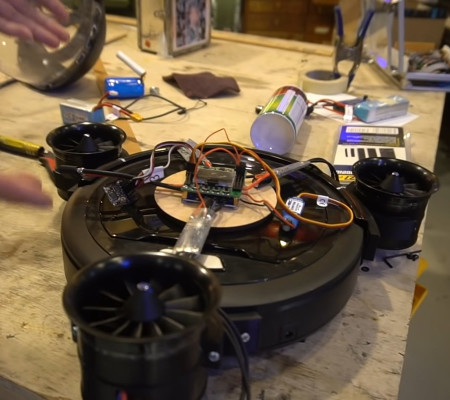 O projeto, que custou US$ 200 (R$ 816, em conversão direta) em componentes eletrônicos, acoplou um trio de motores elétricos ao aspirador de pó. Acionados, os motores deslocam ar suficiente para dar sustentação ao aparelho, que passa a voar como um drone.