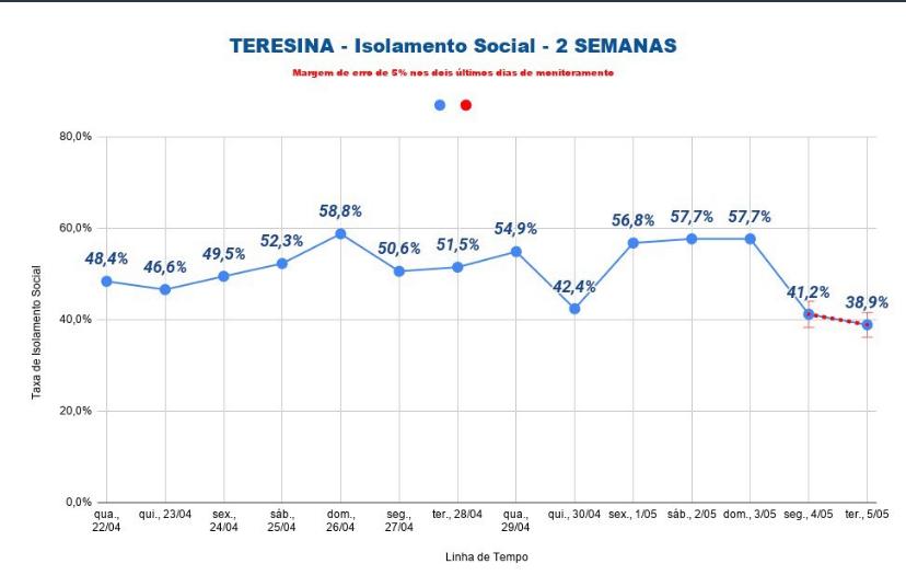 O índice de isolamento em Teresina chegou a 38,9% na terça-feira (5). Foi o pior registro desde o decreto de quarentena e o prefeito Firmino Filho, preocupado, engrossou o tom: “Espero que as pessoas que estejam desrespeitando a quarentena saibam da sua responsabilidade com as vidas que serão perdidas”, disse o gestor em sua conta do twitter.