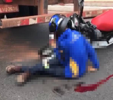 THE: Motociclista fratura pernas após colidir na traseira de caminhão