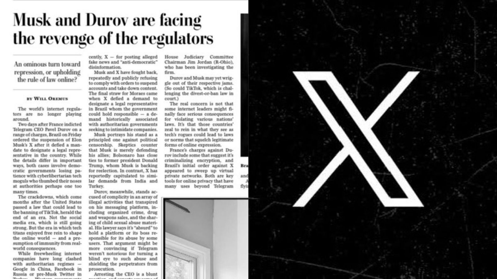 Os reguladores mundiais da internet não estão mais brincando. Dois dias após a França indiciar o CEO do Telegram, Pavel Durov, por uma série de acusações, o Brasil ordenou na sexta-feira a suspensão do X de Elon Musk após ele desafiar um mandato para designar um representante legal no país.