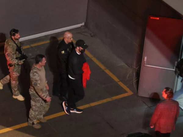 O empresário Thiago Brennand, que estava foragido nos Emirados Árabes, desembarcou sob custódia policial no Aeroporto Internacional de Guarulhos, em São Paulo, no final da tarde de hoje. Ele usava um boné, máscara facial e uma blusa vermelha para esconder as mãos algemadas.