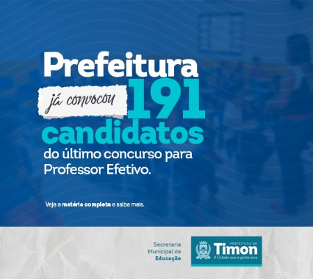 A Prefeitura de Timon já convocou 191 professores aprovados no último concurso público realizado pelo município para o preenchimento das vagas de cargos efetivos do quadro permanente de professores da SEMED.