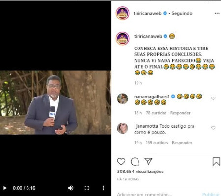 “Conheça essa história e tire suas próprias conclusões. Nunca vi nada parecido. Veja até o final”, escreveu o humorista cearense em sua conta oficial no Instagram. A publicação já consta com 308.654 visualizações e centenas de comentários de seus seguidores.