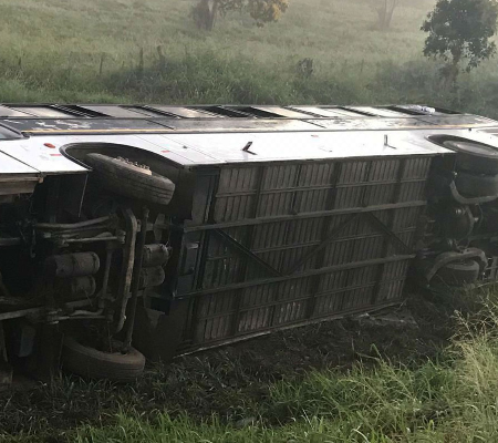 Torcedores do Corinthians ficam feridos após ônibus tombar em rodovia